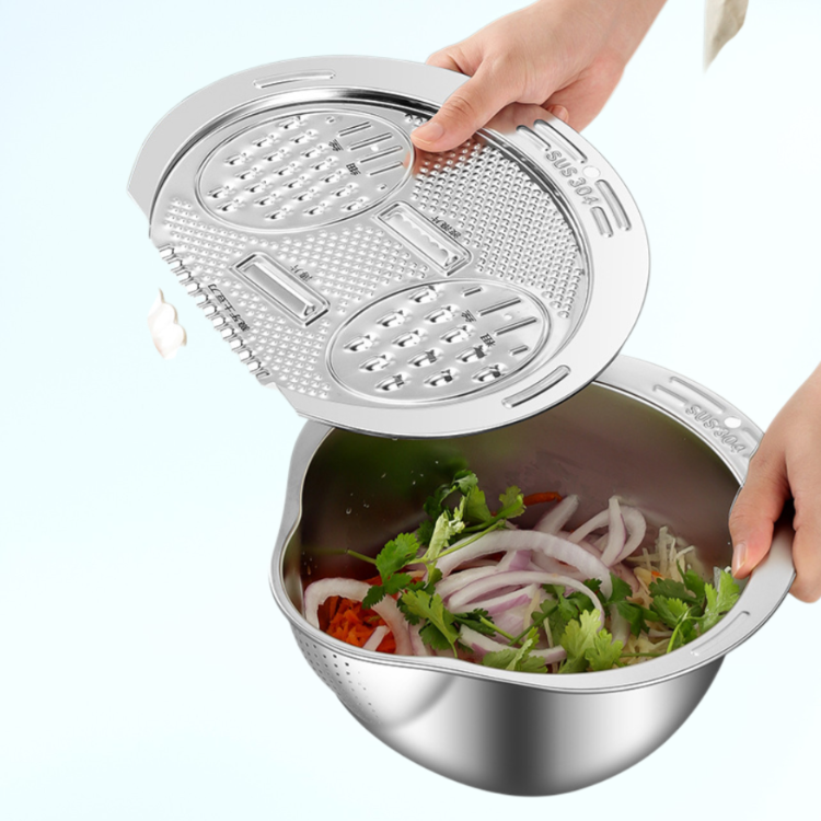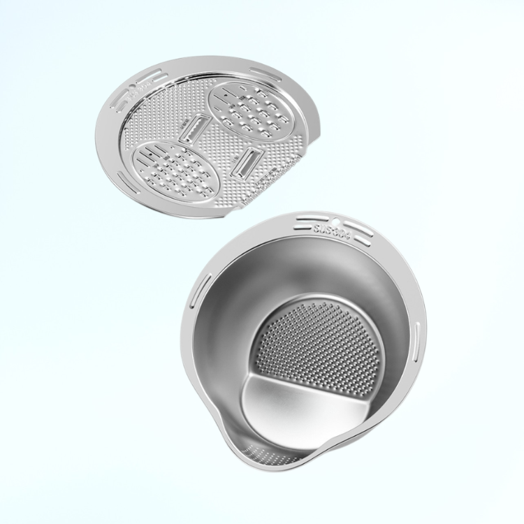 두꺼운 스테인리스 쌀 씻기 볼, 내구성 강한 소재, 위생적 관리, 대용량 설계, 빠른 배수, 다용도 사용 가능